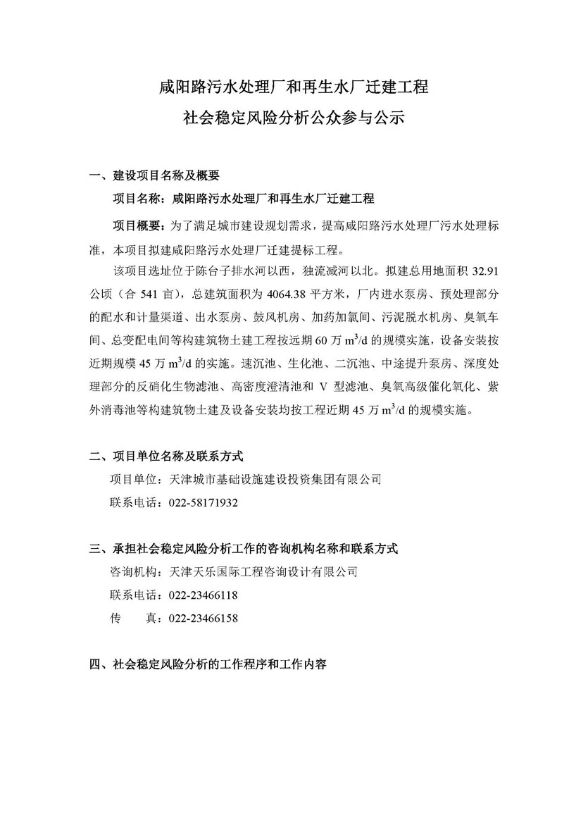 咸陽(yáng)路污水處理廠(chǎng)和再生水廠(chǎng)遷建工程社會(huì )穩定風(fēng)險分析