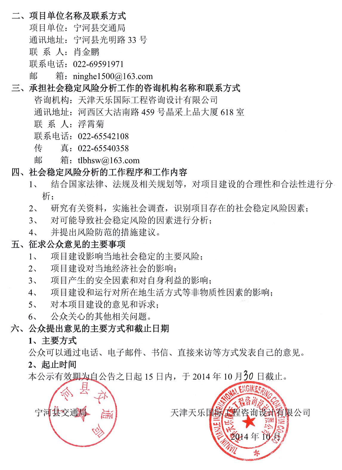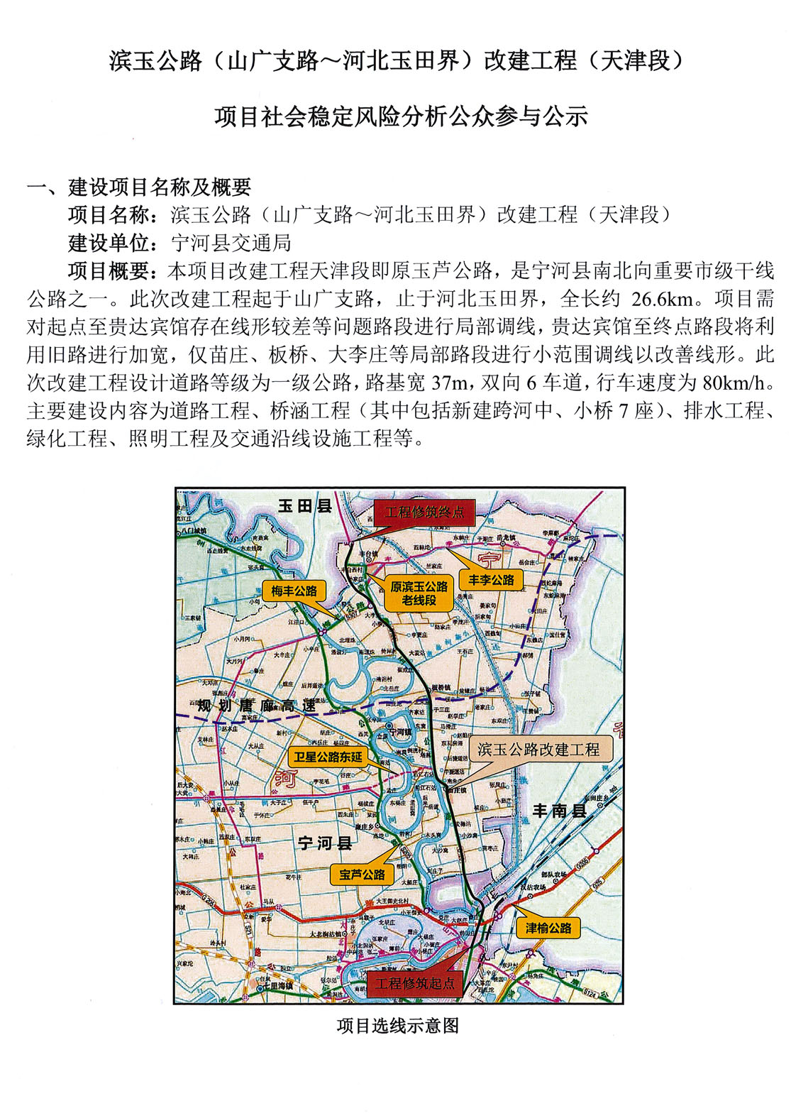 濱玉公路(山廣支路~河北玉田界)改建工程(天津段)項目社會(huì )穩定風(fēng)險分析
