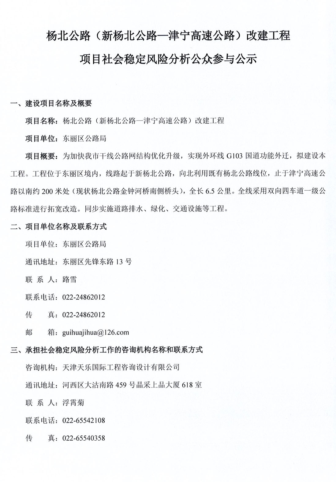 楊北公路(新楊北公路—津寧高速公路)改建工程項目社會(huì )穩定風(fēng)險分析